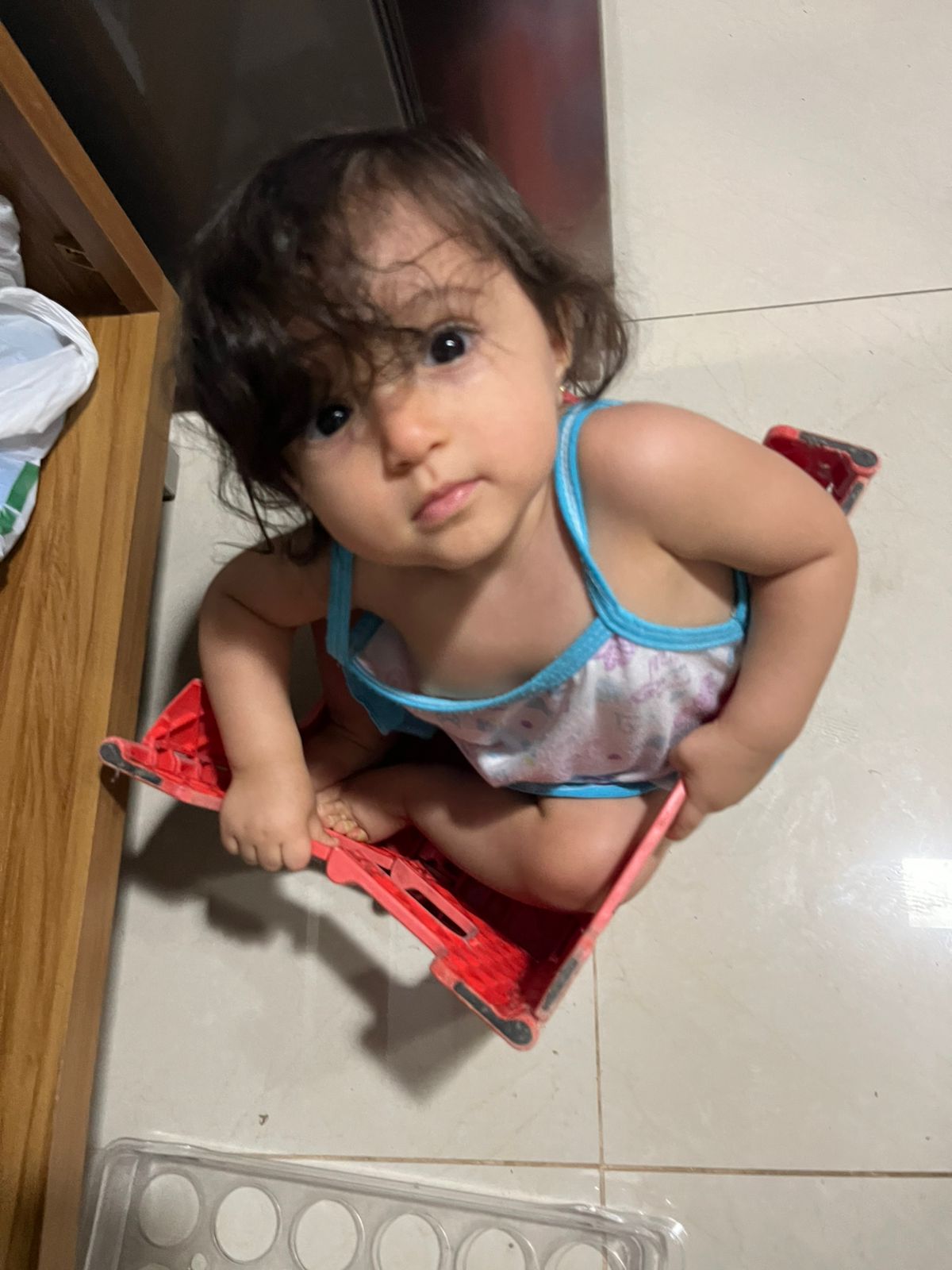 Imagem capiturada em 16/04/25, por Pedro (pai). Nessa fase, a princesa está aprendendo a dormir na rede.