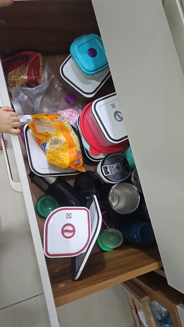 Mamãe "vacilou", deixou o armário desprotegido. Assim, Ísis entra em ação e "organiza" tudo.